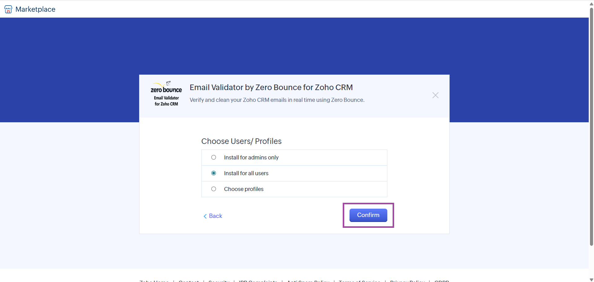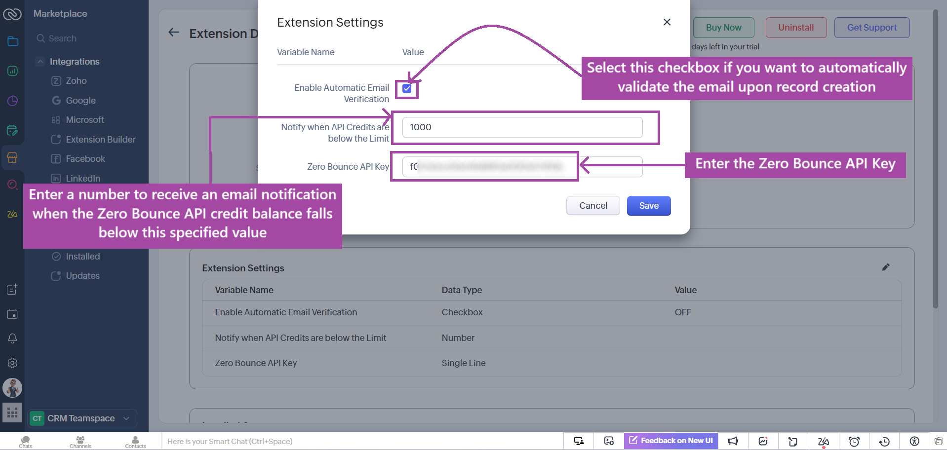- Locate Email Validator by Zero Bounce for Zoho CRM and click Uninstall.