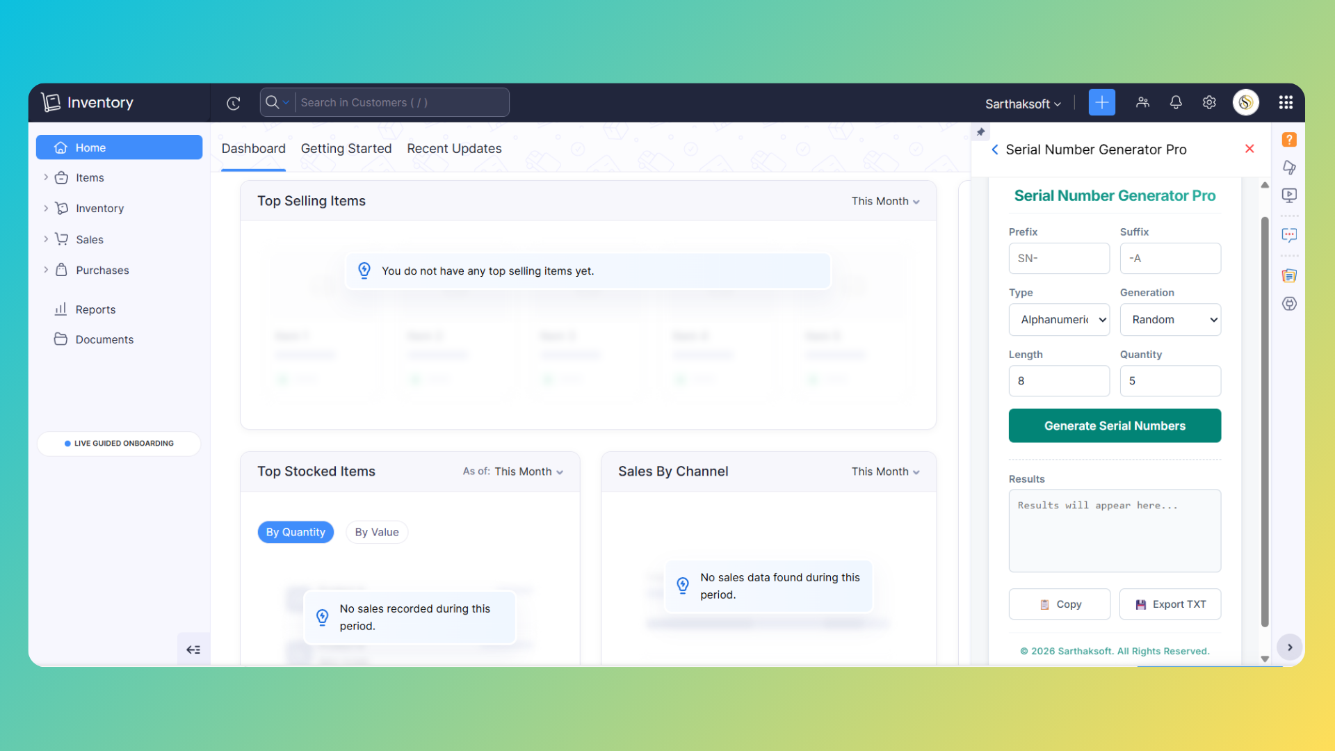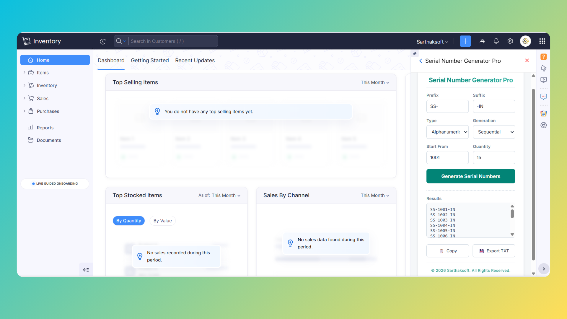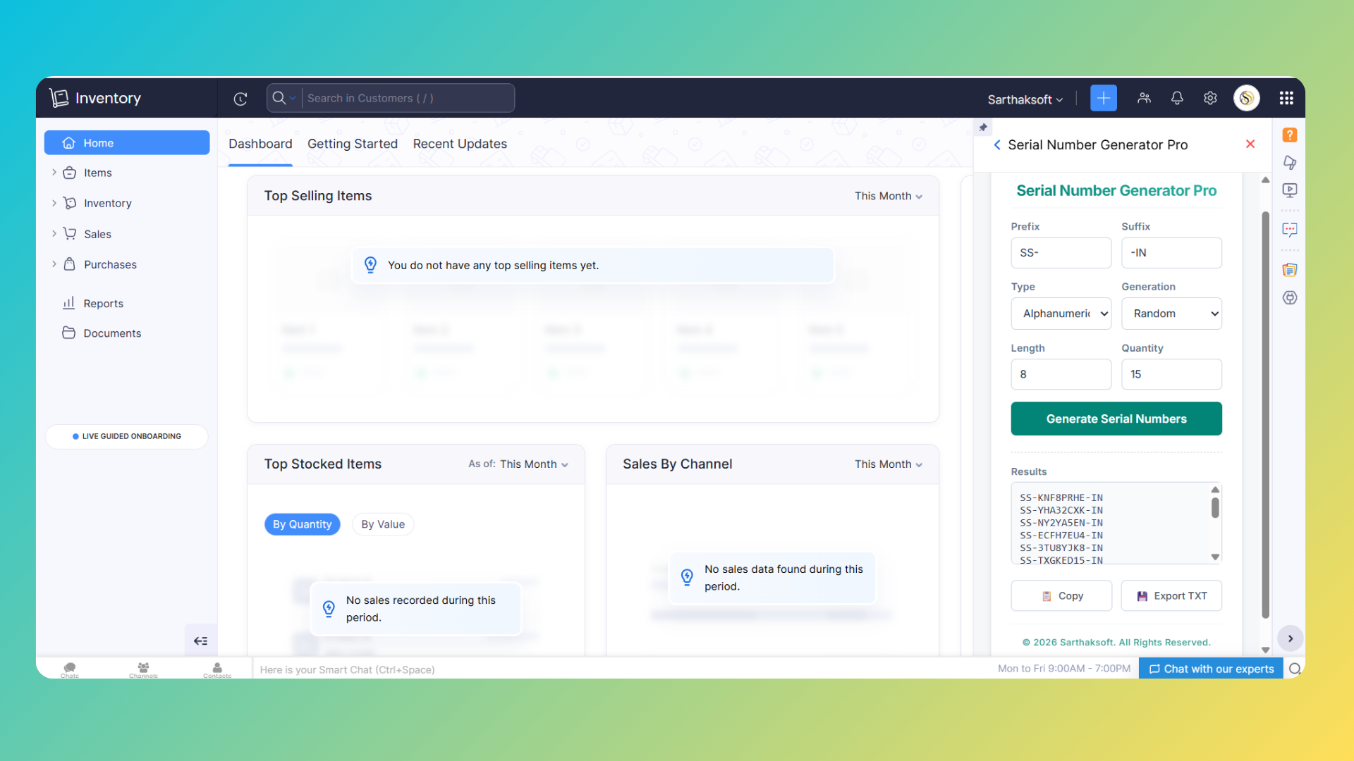 Once the installation is complete, the extension will be available within your Zoho Inventory interface and can be accessed whenever serial numbers need to be generated.